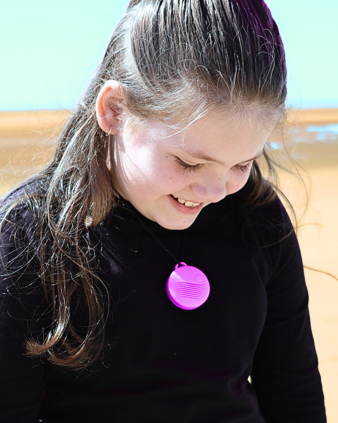 Sensory vibration necklace for autism, ADHD, sensory processing disorder, anxiety and more.
