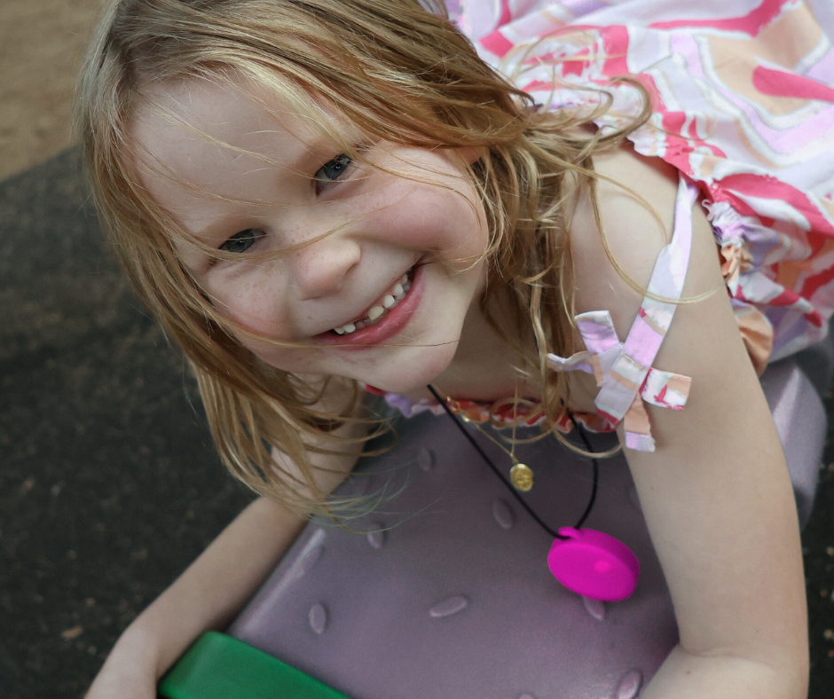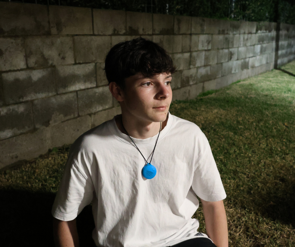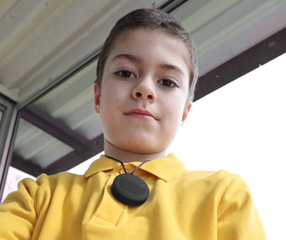 A necklace cord with a child-safe breakaway clasp is included. Thread the rope through the hole at the top of the silicone casing to wear it around the neck. -